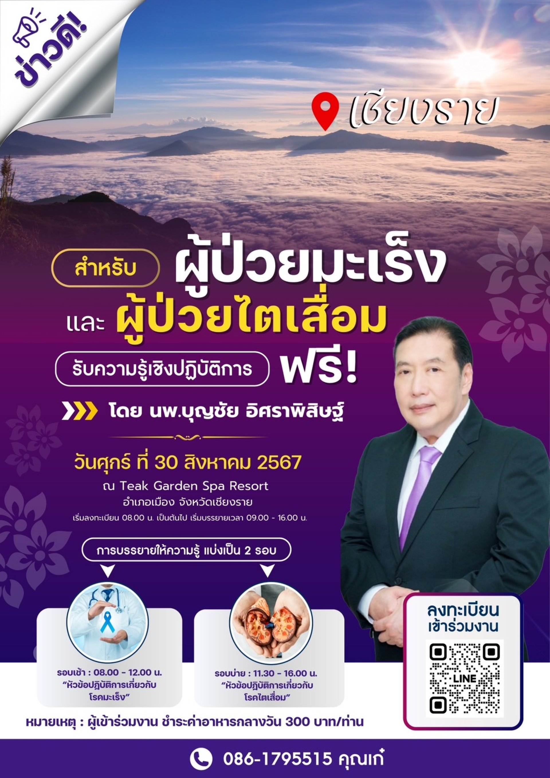 วิทยากรให้ความรู้โดย นพ.บุญชัย อิศราพิสิษฐ์ ผู้มีประสบการณ์ในการดูแลผู้ป่วยทั้ง 2 กลุ่มโรค มายาวนานกว่า 8 ปี มีผู้ป่วยที่ผ่านการดูแลมากกว่า 10,000 คน