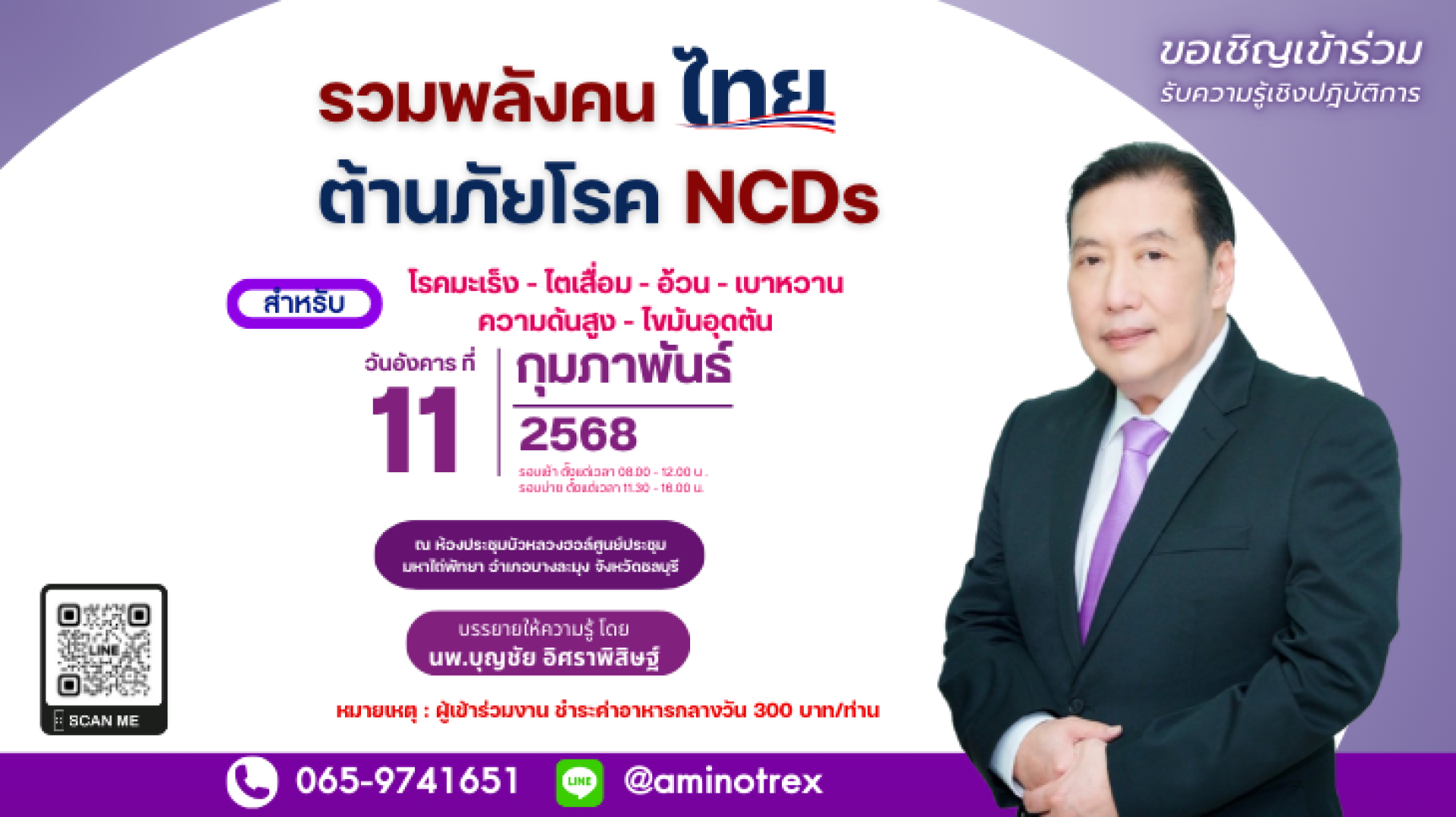 ขอเชิญชวนทุกท่านมาร่วมกันเปลี่ยนประเทศไทย ให้เป็นประเทศแรกในโลก ที่โรค NCDs ลดลงเป็นประเทศแรก