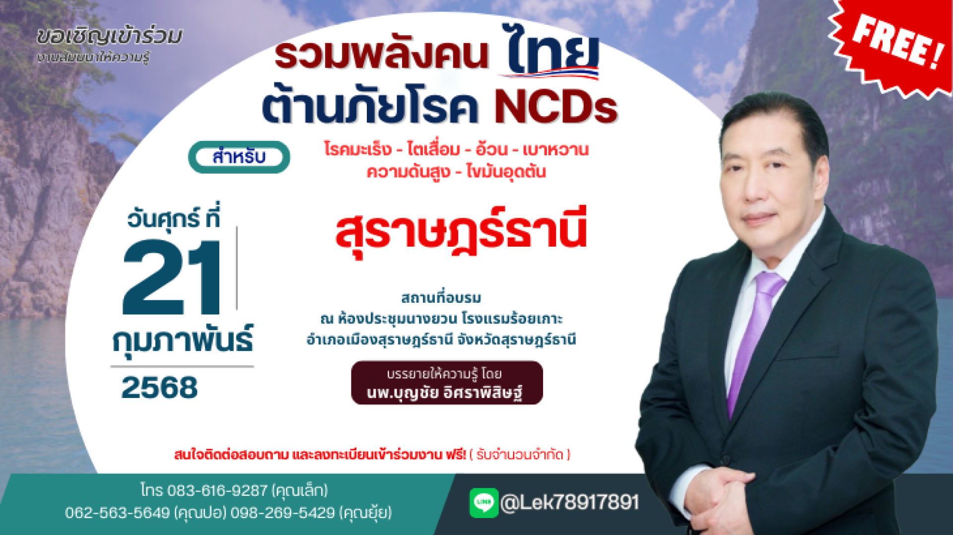 เชิญชวนเข้าร่วมฟังบรรยาย วันที่ 21 กุมภาพันธ์ 2568 ที่จังหวัดสุราษฎร์ธานี