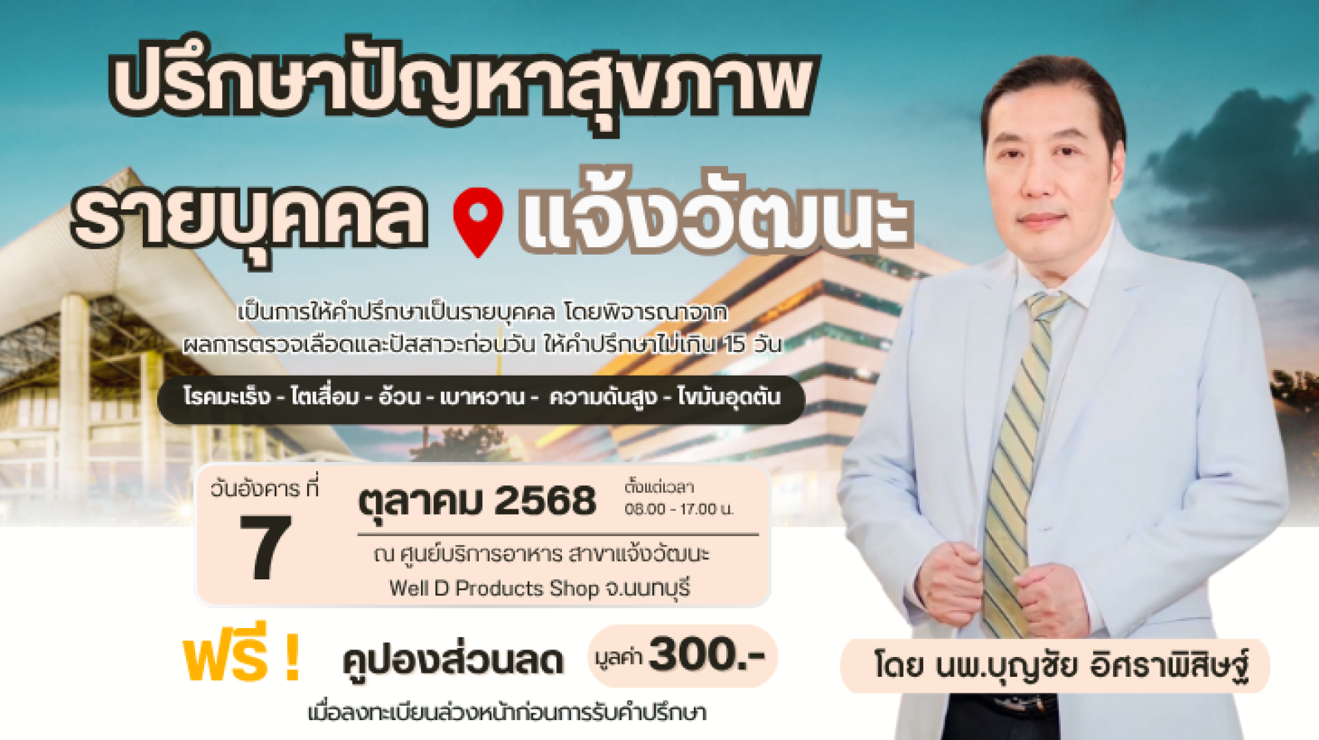 ลงทะเบียนรับคำปรึกษาปัญหาสุขภาพ “รายบุคคล” กับ คุณหมอบุญชัย อิศราพิสิษฐ์